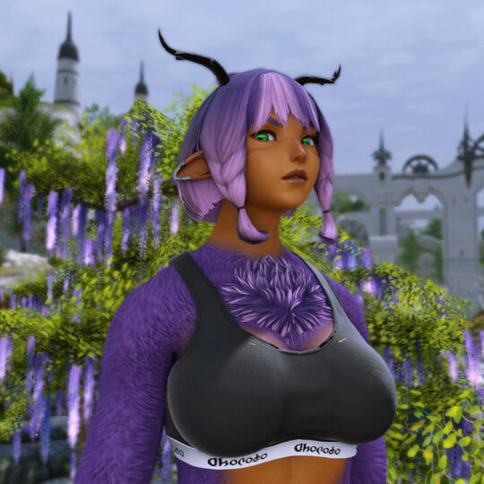 . birthplace . Roughsbark Village, The Black Shroud, Eorzea. .. APPEARANCE. hair . Short with two braids, Purplish Blue with Light Purple lights